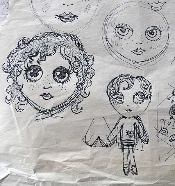 I have spent the last couple of days doodling around with some ideas for material and dolls, inspiration taken from other dolls I have found on the web, Blythe, Pullip and others I blogged about the other day. Is it okay to do this? If I do it in my own special way? hmm not sure but I am inspired by many things. Anyway I got all excited looking at spoonflower over the weekend, and decided I would like to give this fabric design a go myself, dress fabric, dolls to cut out and make, cushion covers, I could spend a fortune!